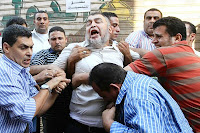 Image: Egyptian plain-clothes policemen try to remove political activist and journalist Mohammed Abdulquddous from a protest in Cairo.
